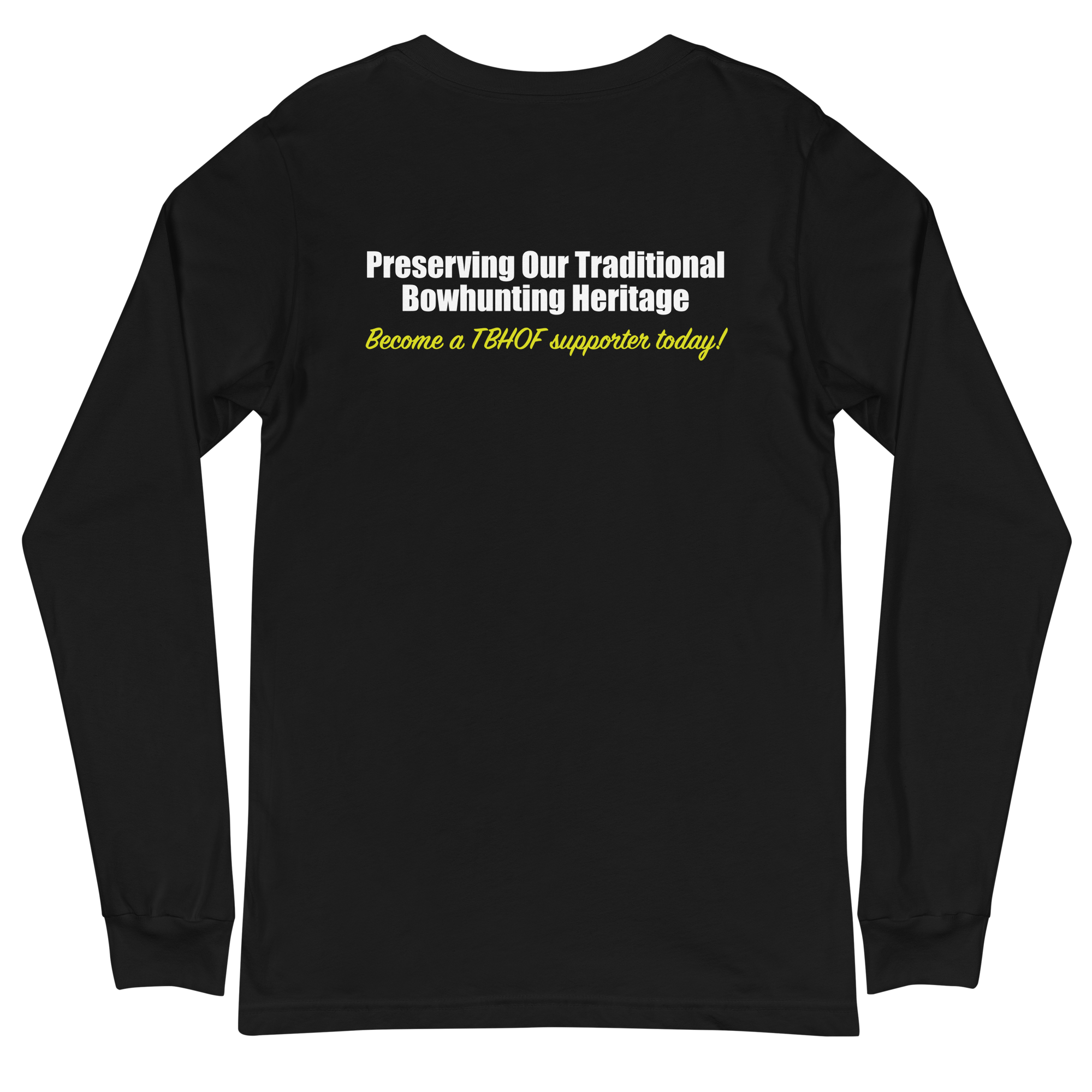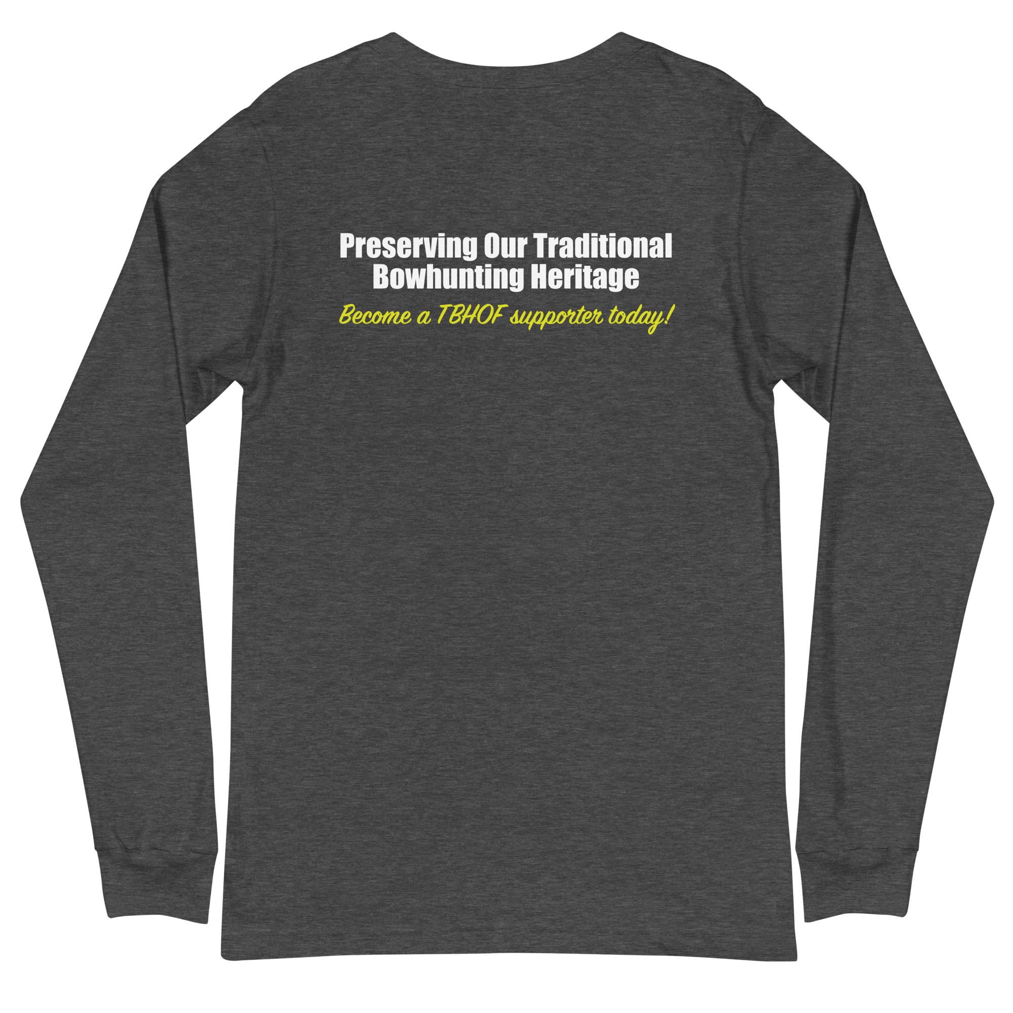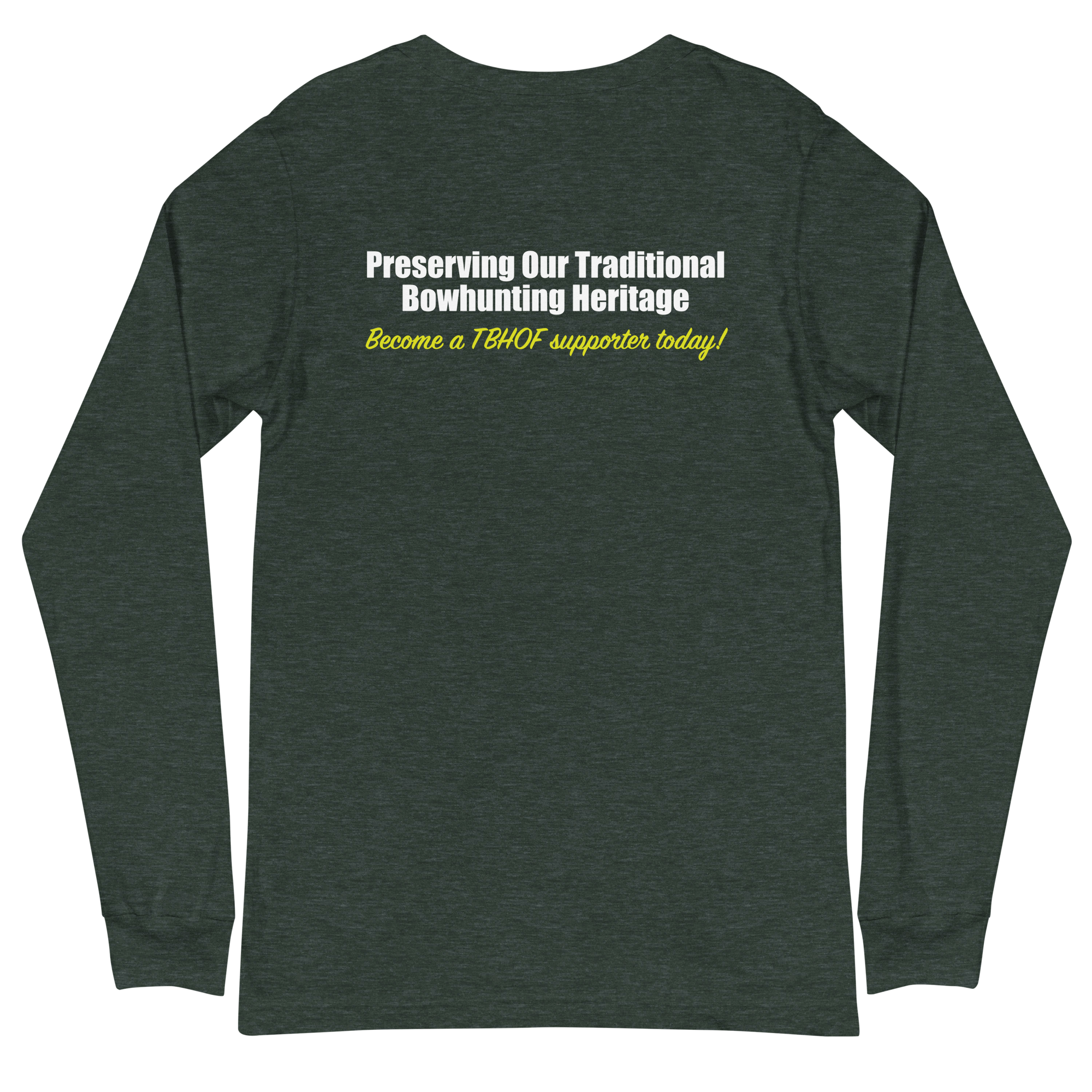 There is a small white logo on the front left, and text on the back “Preserving our Traditional Bowhunting Heritage”