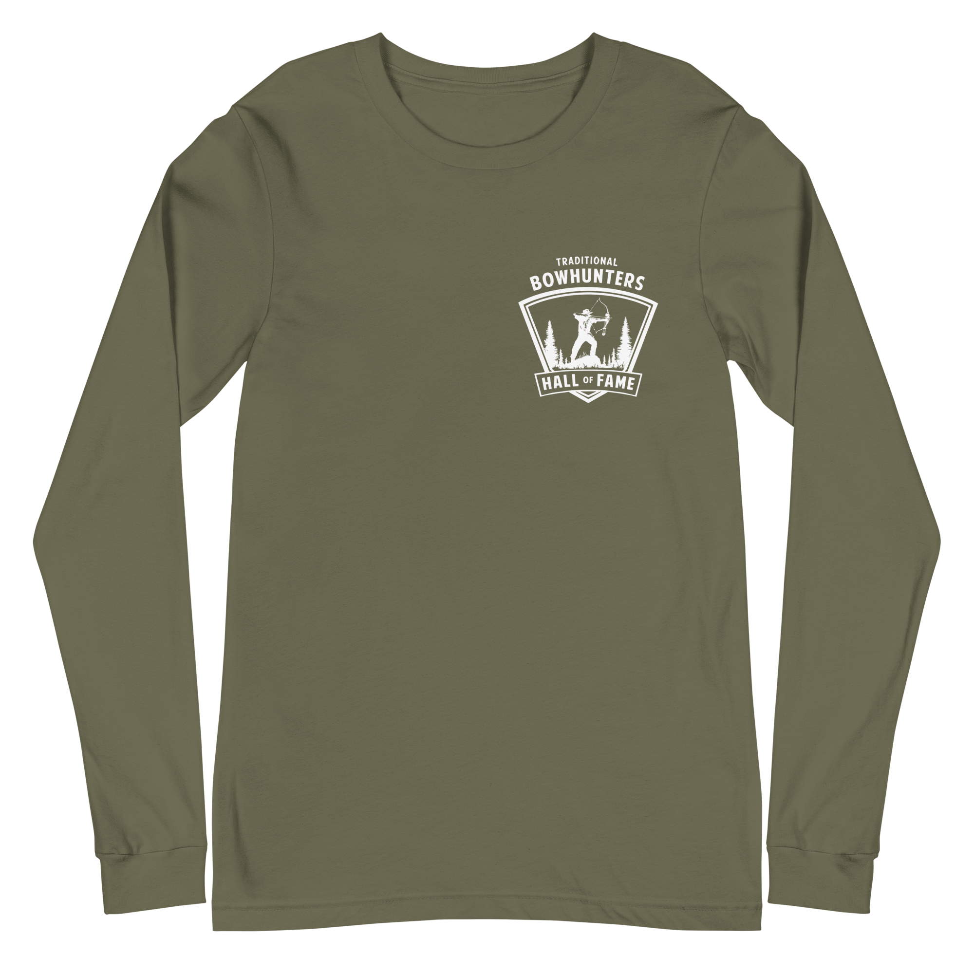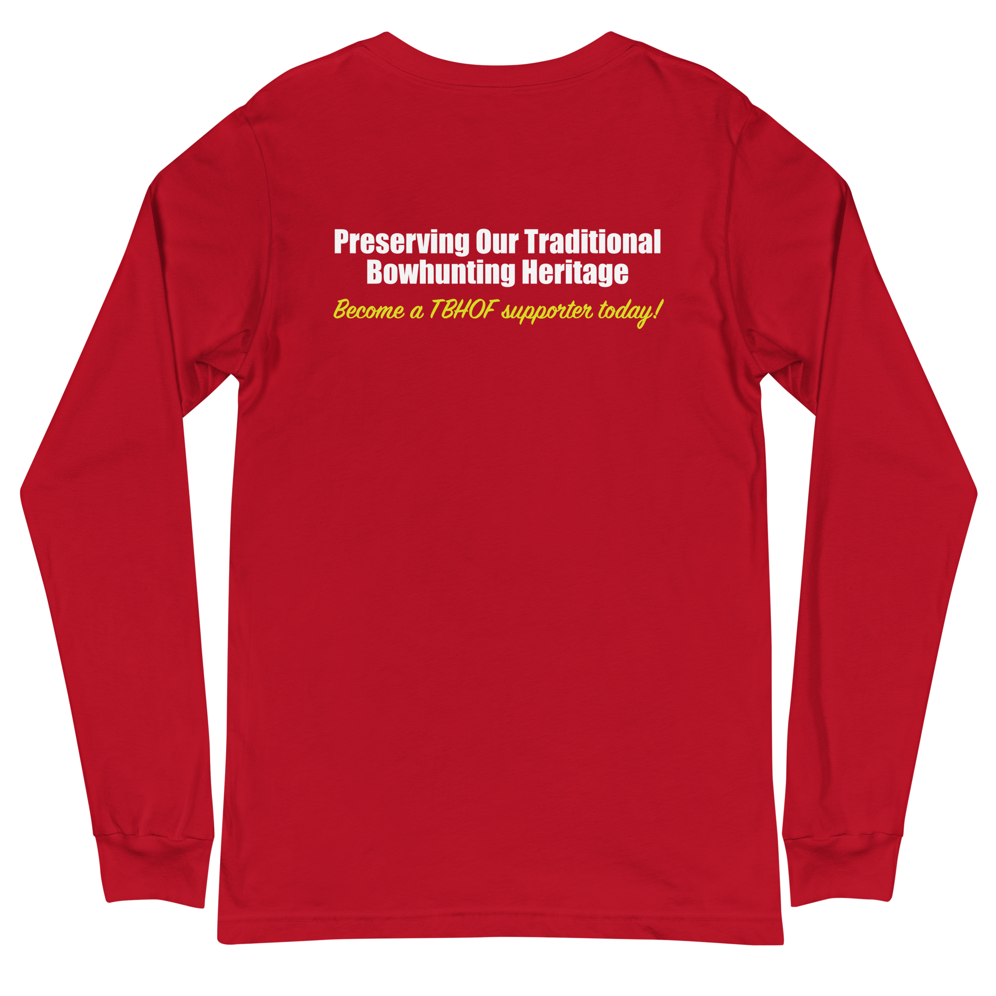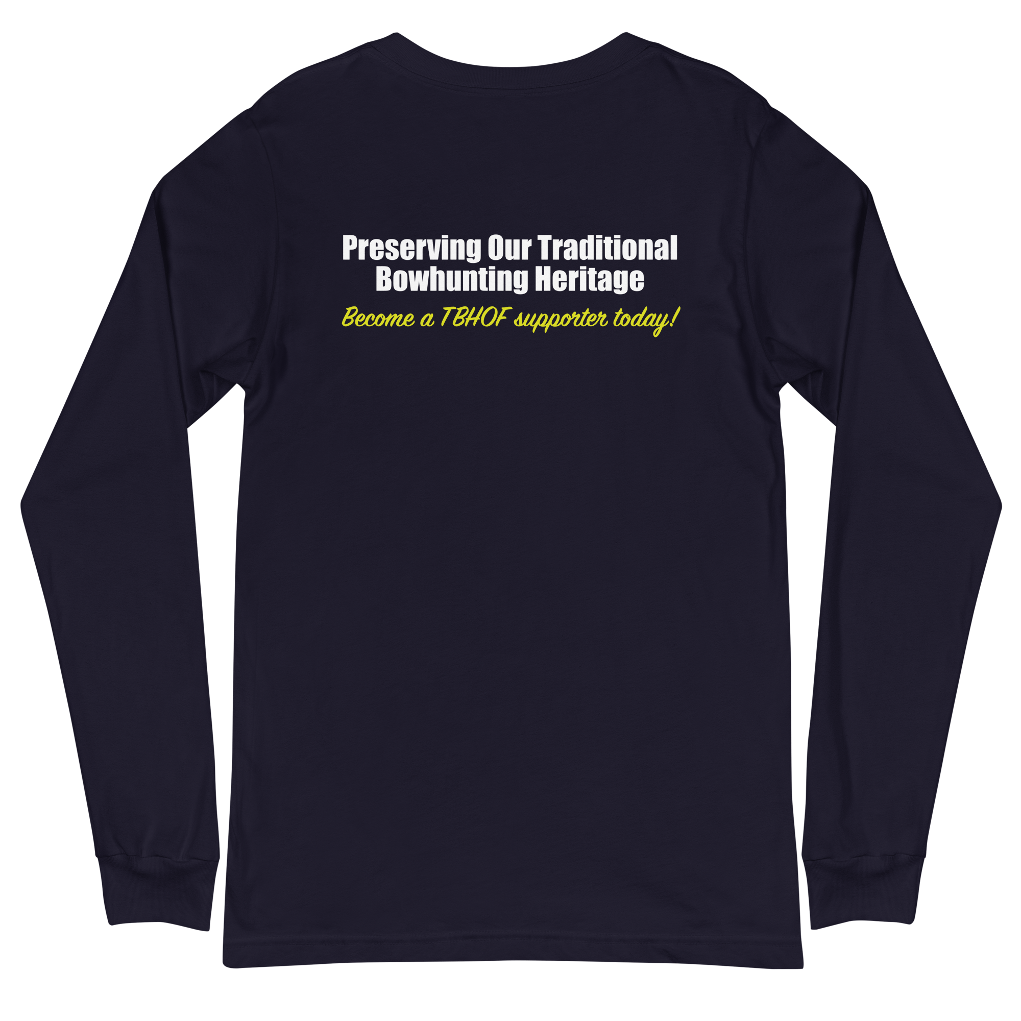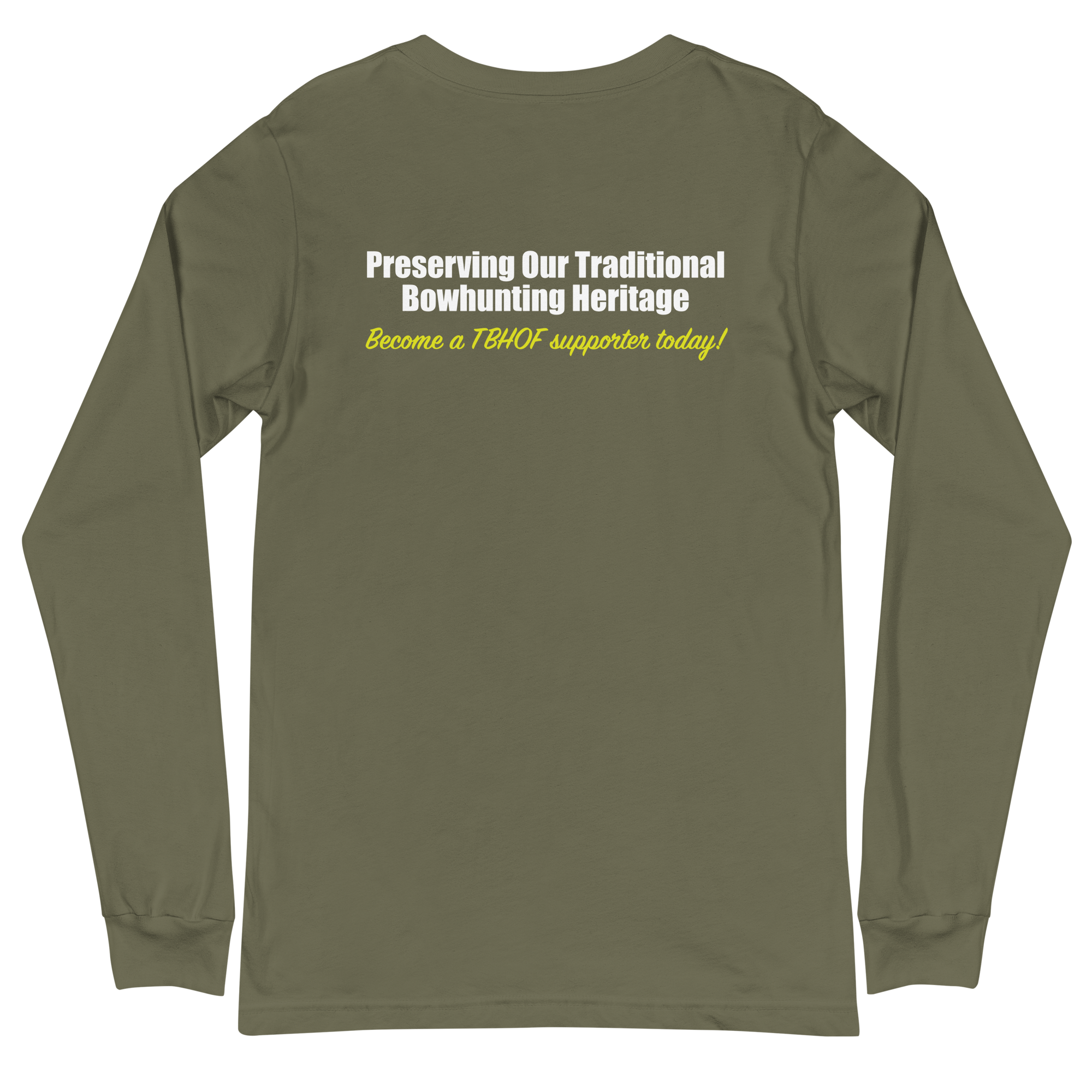 There is a small white logo on the front left, and text on the back “Preserving our Traditional Bowhunting Heritage”